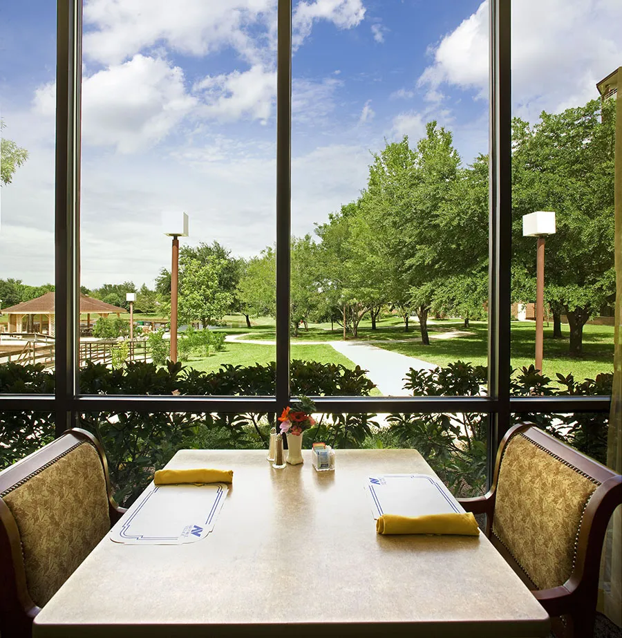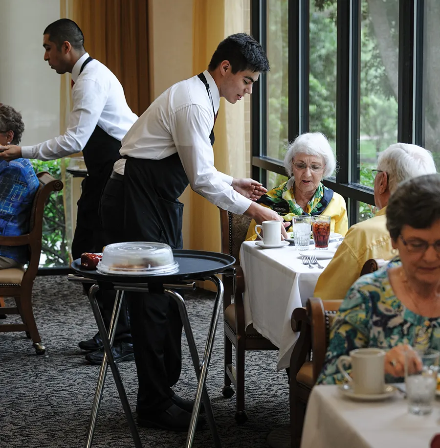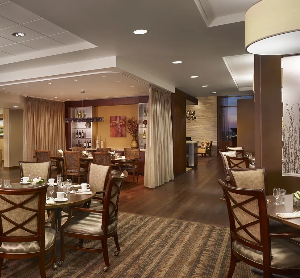 Our restaurant-style dining allows you to share a romantic meal for two, dine with neighbors, or join a table and meet new people.